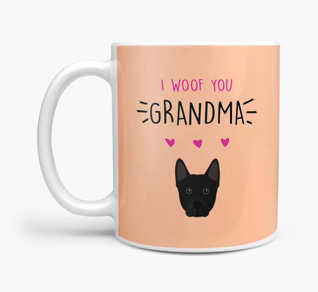 Personalized with your pup's adorable icon, this mug is a charming way to treat your pup's grandma and express how much you and Frenchie Staff woof them.