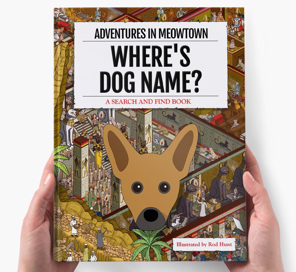 Get ready to unleash your inner detective with our popular Search & Find book, ‘Where’s (insert dog name)?’ It’s the personalized dog book everyone’s yapping about! With twelve beautifully illustrated locations to explore, we challenge you to find your adventurous {breedShortName} on each action-packed page. Can you spot all the canine cameos and funny parodies too?