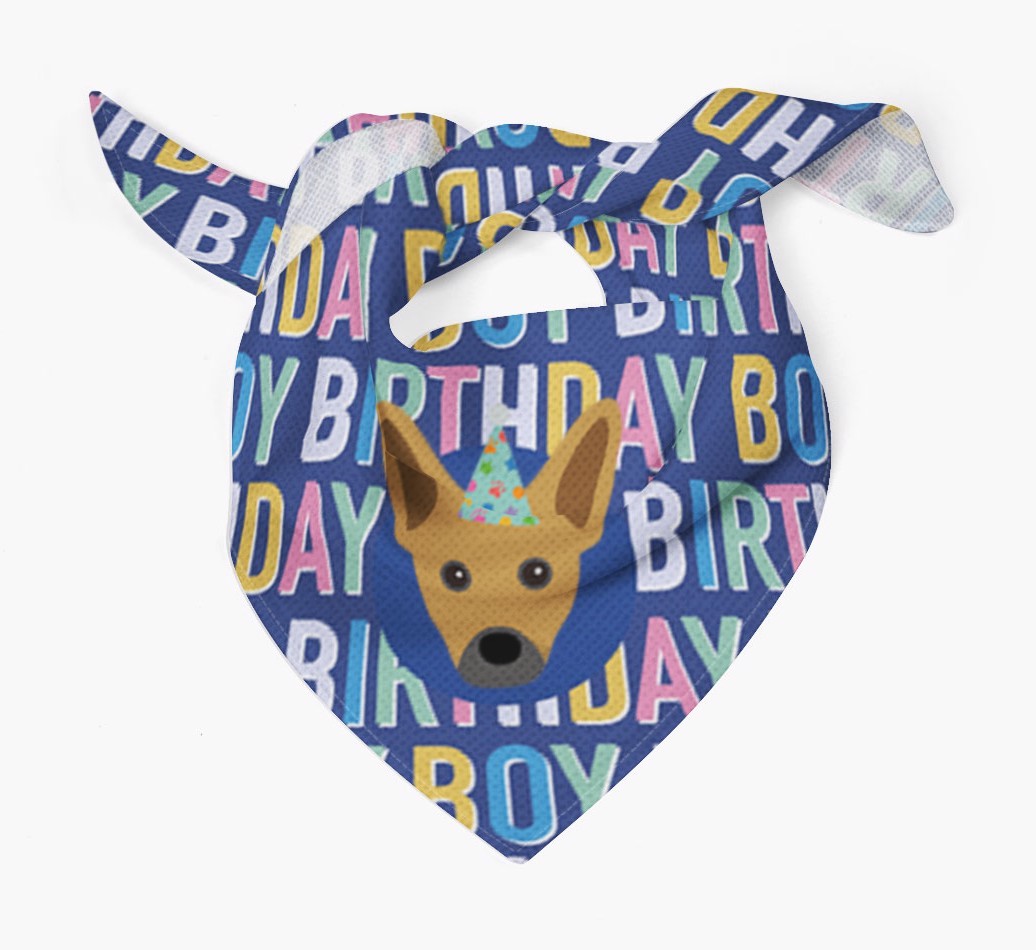 Featuring a colorful text pattern that reads 'birthay boy' and personalized with French Pin's cute icon (complete with a fun party hat), your French Pin will look simply pawgeous on their special day when they're wearing this bandana.