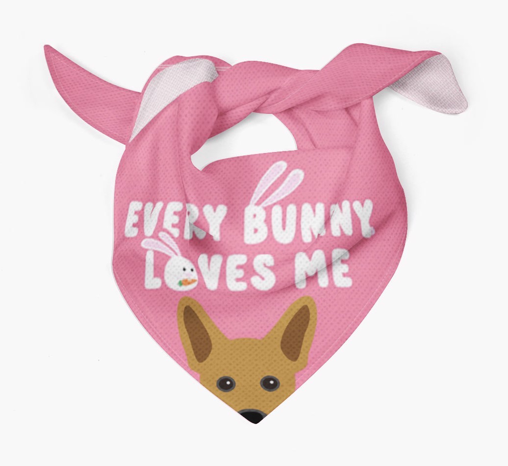 Tailored with the fabulous saying: 'Every Bunny Loves Me', this bandana is the perfect addition to your French Pin's wardrobe! Available in four egg-ceptional colors and personalized with your French Pin's icon, this is the perfect pawchase for Easter!