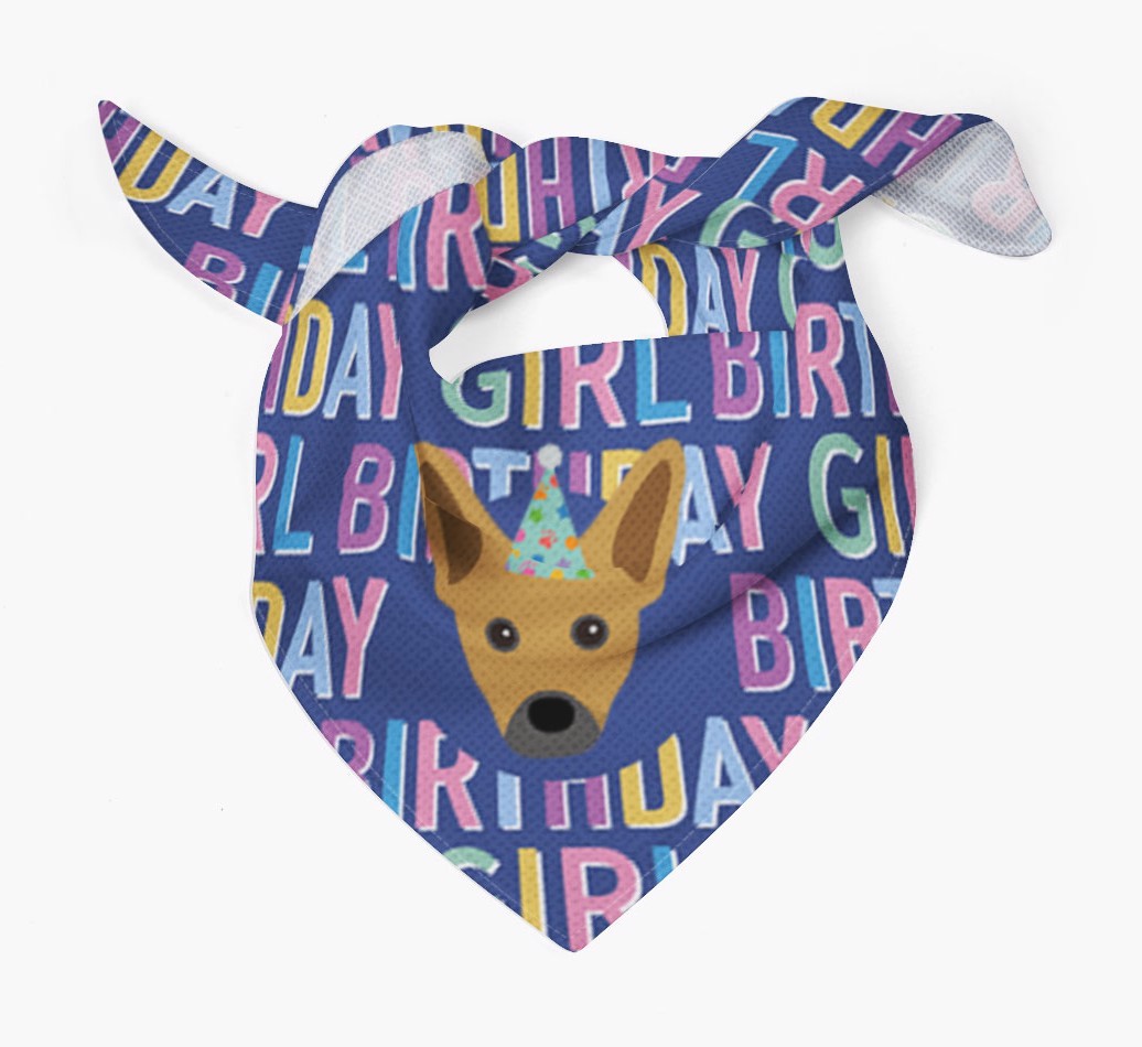 Featuring a text pattern that reads 'birthay girl' and personalized with French Pin's cute icon (complete with a fun party hat), your French Pin will look simply pawgeous on their special day when they're wearing this bandana.