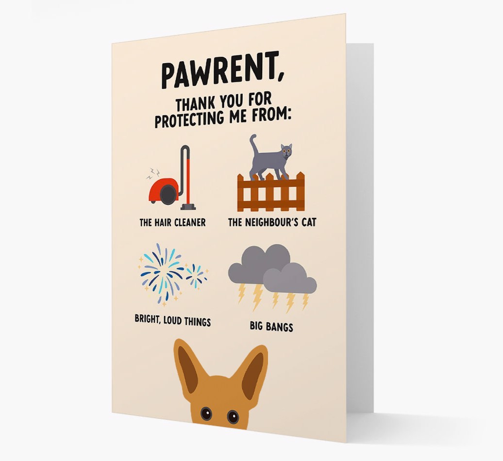 Featuring your French Pins Yappicon and a furbulous Yappy.com design, this card is sure to let Your French Pin's pawrent know that they feel protected from big bangs and frightening felines.