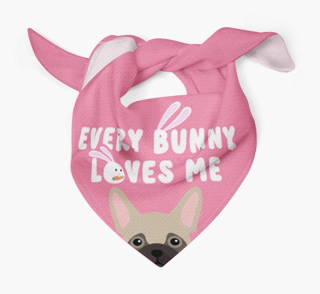 Tailored with the fabulous saying: 'Every Bunny Loves Me', this bandana is the perfect addition to your Frug's wardrobe! Available in four egg-ceptional colors and personalized with your Frug's icon, this is the perfect pawchase for Easter!