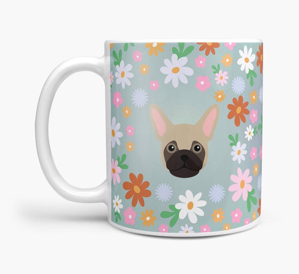 Featuring a colorful bunch of flowers, this mug is printed with the words 'woofly grandma' on one side of the mug and your Frug's cute icon on the other. Bloomin' lovely!