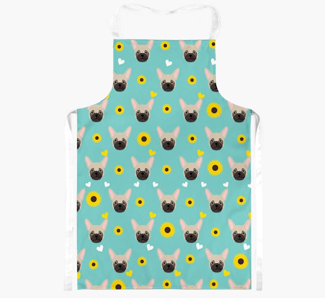 This apron has a delightful sunflower and heart pattern, and best of all - it's personalized with Frug's face too! This cute and colorful apron is sure to put a smile on every dog lover's face.