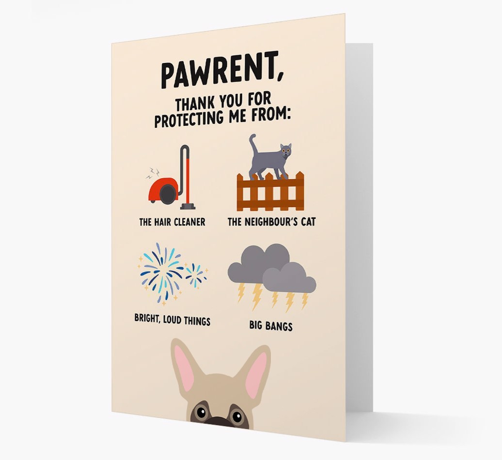 Featuring your Frugs Yappicon and a furbulous Yappy.com design, this card is sure to let Your Frug's pawrent know that they feel protected from big bangs and frightening felines.