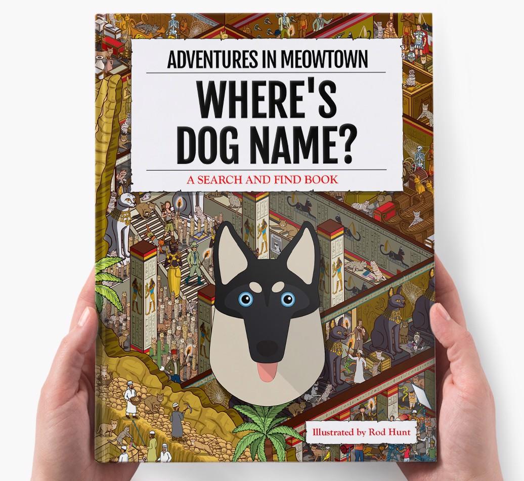 Get ready to unleash your inner detective with our popular Search & Find book, ‘Where’s (insert dog name)?’ It’s the personalized dog book everyone’s yapping about! With twelve beautifully illustrated locations to explore, we challenge you to find your adventurous {breedShortName} on each action-packed page. Can you spot all the canine cameos and funny parodies too?