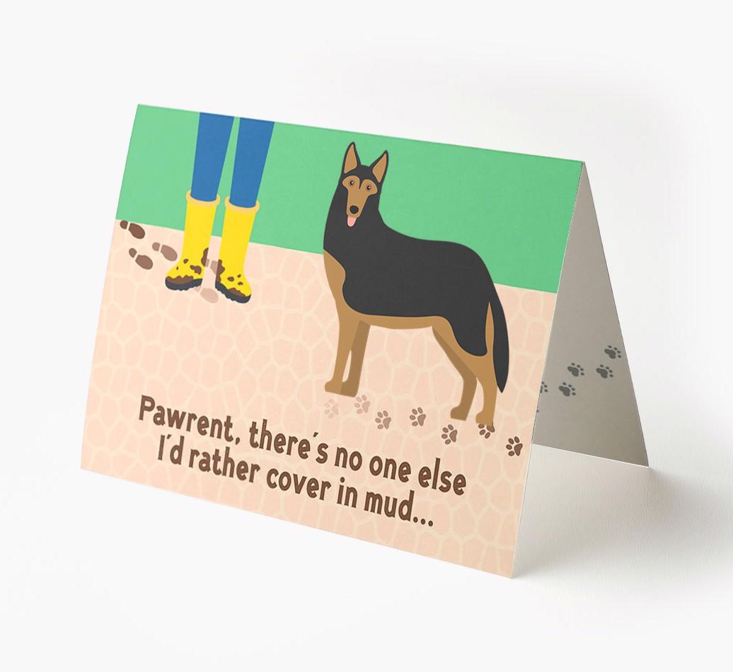 This comical card is sure to delight Gerberian Shepsky's pawrent (without getting muddy), especially as it stars their German Husky's cheeky icon.