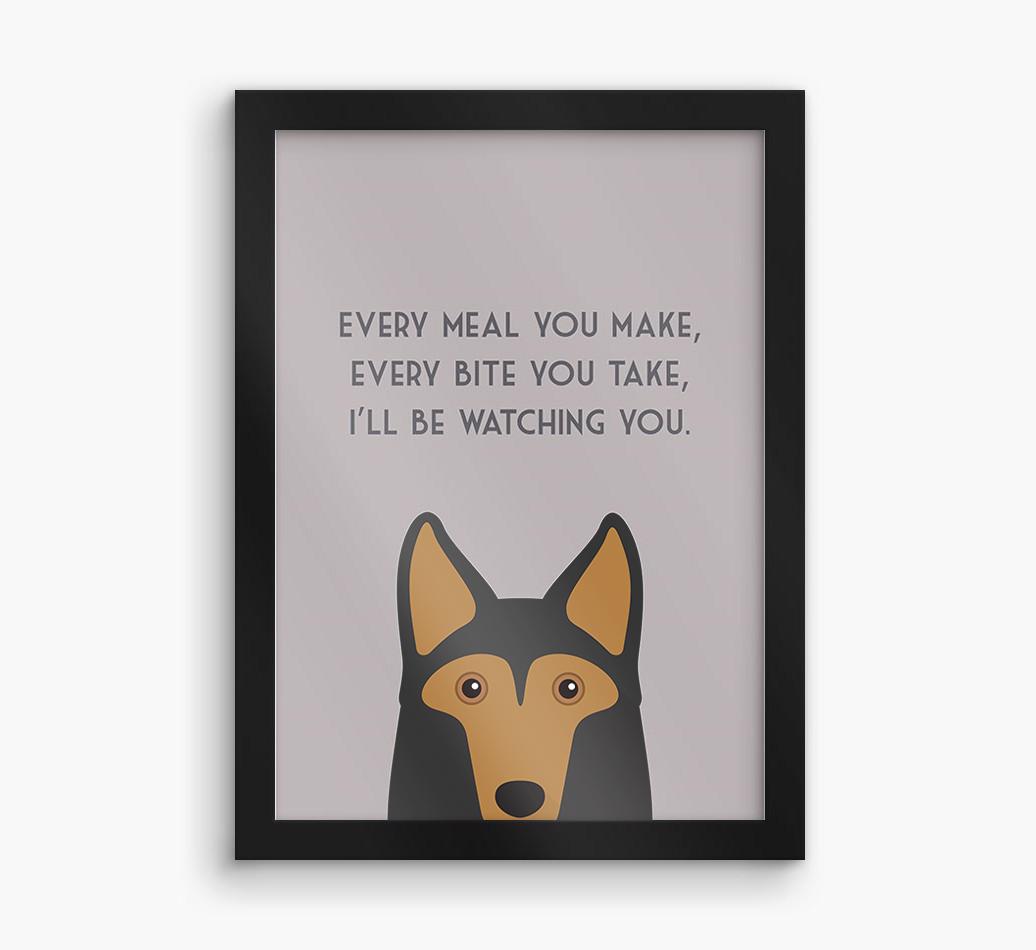 Printed with the words, ‘Every meal you make, every bite you take, I’ll be watching you’ and complete with our cute German Husky peeking from the bottom of the design, this artwork will look great on display in the kitchen or anywhere Gerberian Shepsky likes to watch you eat!