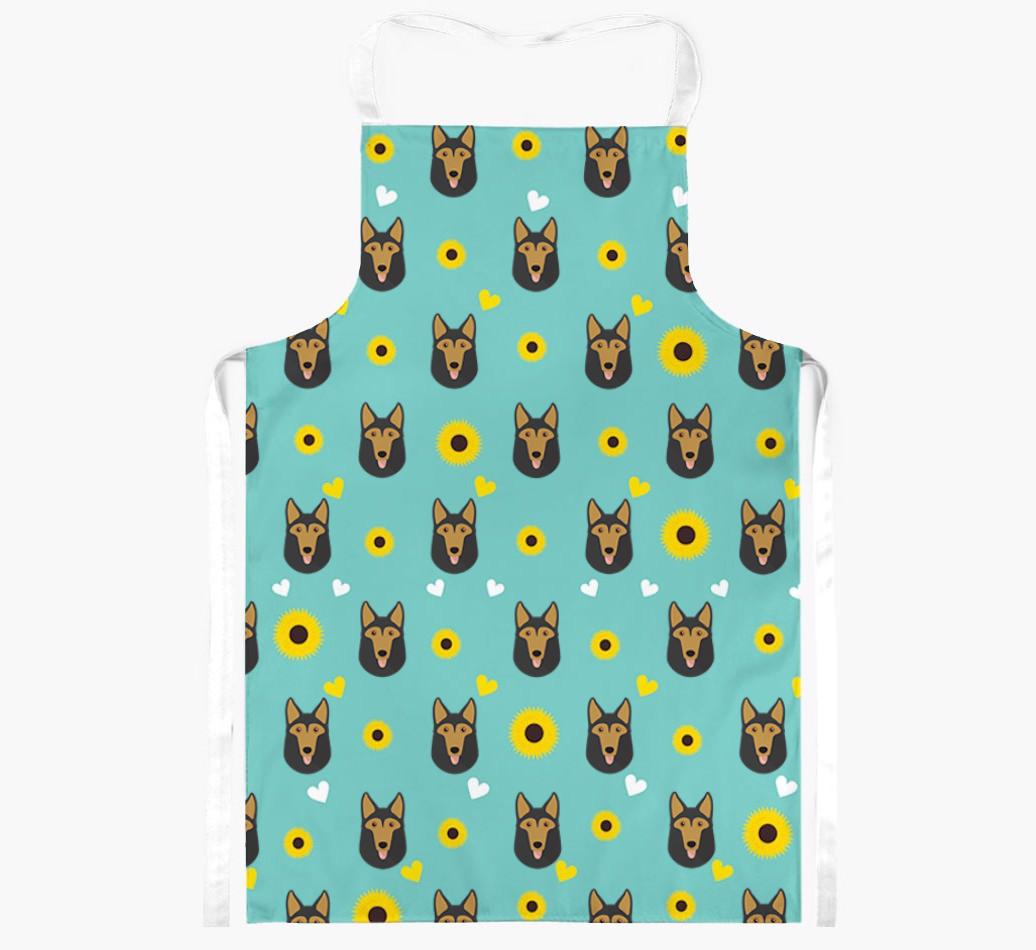 This apron has a delightful sunflower and heart pattern, and best of all - it's personalized with Gerberian Shepsky's face too! This cute and colorful apron is sure to put a smile on every dog lover's face.