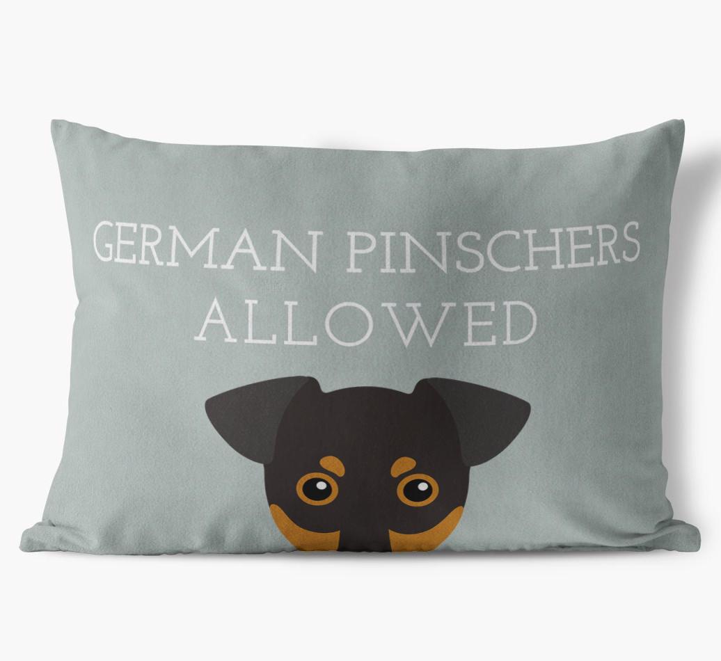 This exclusive, luxurious pillow is printed with the words ‘German Pinschers Allowed’, which I’m sure Your German Pinscher would definitely approve of.