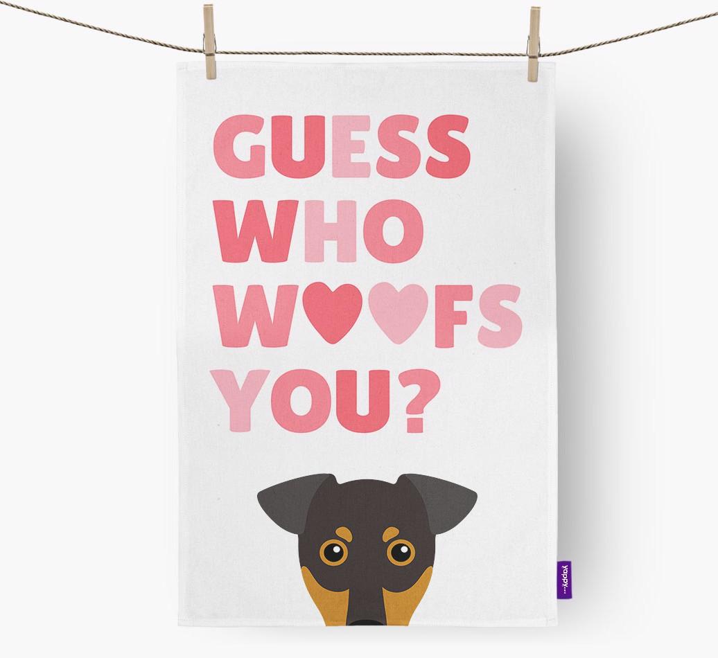 'Guess Who Woofs You?' - Personalized German Pinscher Dish Towel