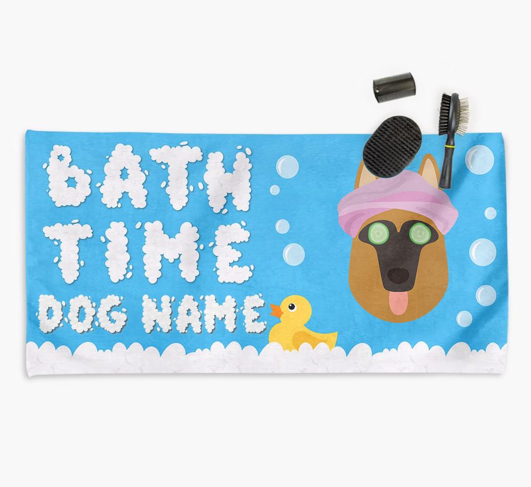 Bubble Bath Time: Personalized German Shepherd Towel