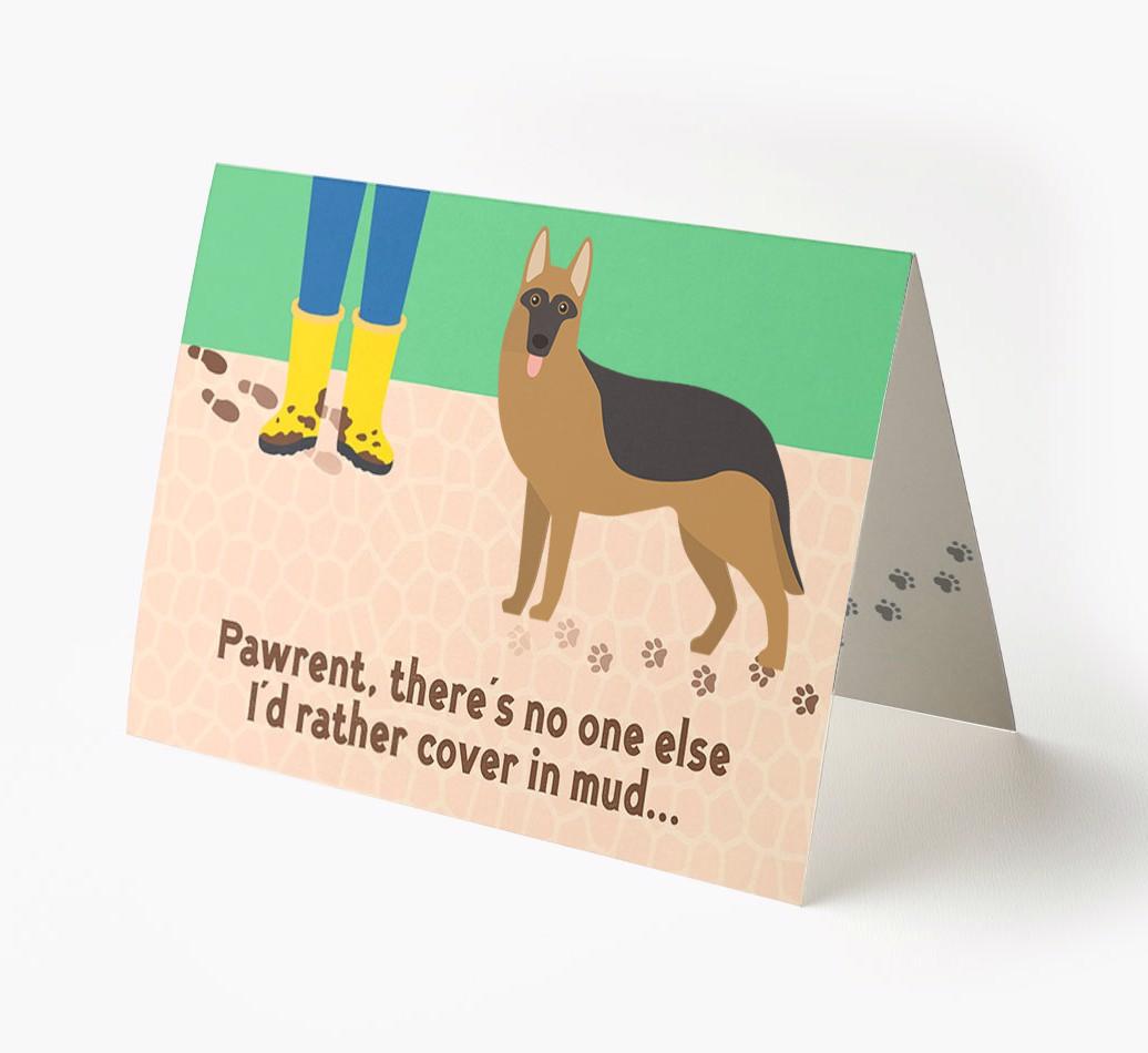 This comical card is sure to delight German Shepherd's pawrent (without getting muddy), especially as it stars their German Shepherd's cheeky icon.
