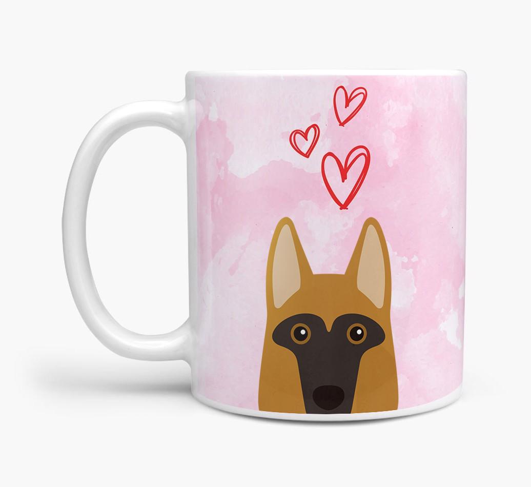 Peeking Dog & Hearts: Personalized German Shepherd Mug