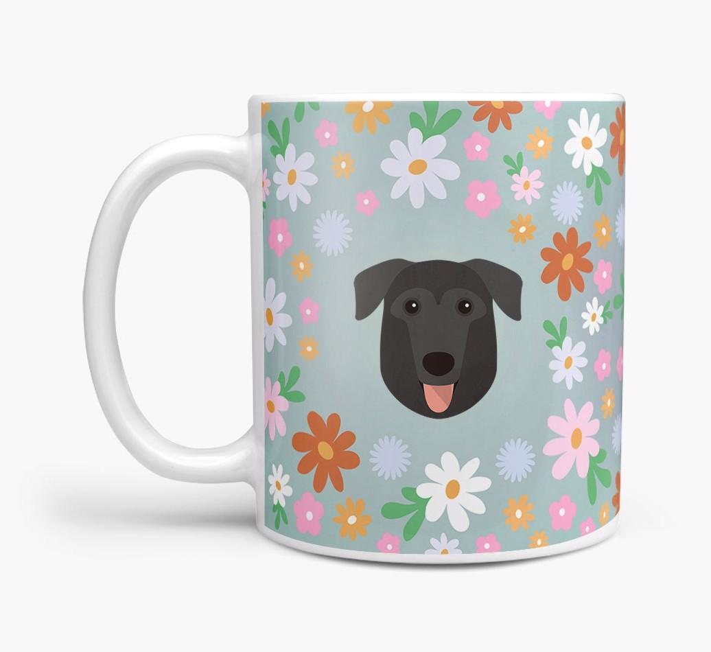 Featuring a colorful bunch of flowers, this mug is printed with the words 'woofly grandma' on one side of the mug and your Sheprador's cute icon on the other. Bloomin' lovely!