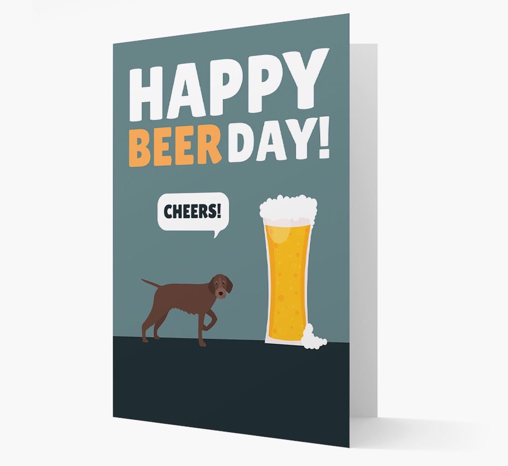 Featuring a tall frothy beer and German Wirehaired Pointer exclaiming cheers! this card is a wagnificent way to celebrate in style.