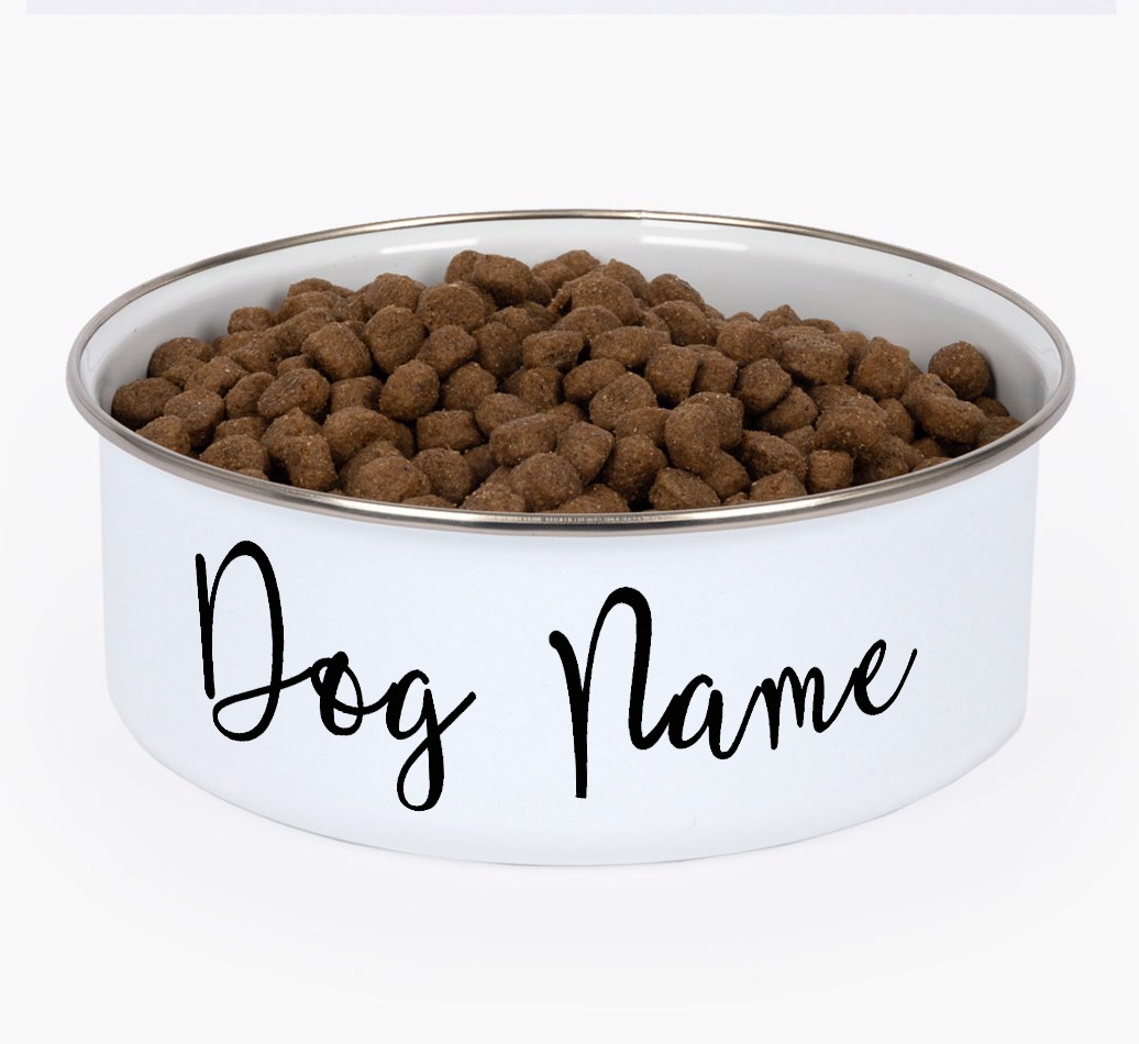 Personalized with German Wirehaired Pointer's name in a pawgeous script font, this bowl is a lovely addition to your pup's dinnertime and it'll look great in the home. Plus, as it's made from lightweight enamel and complete with a travel lid, it can be used as a travel bowl too!