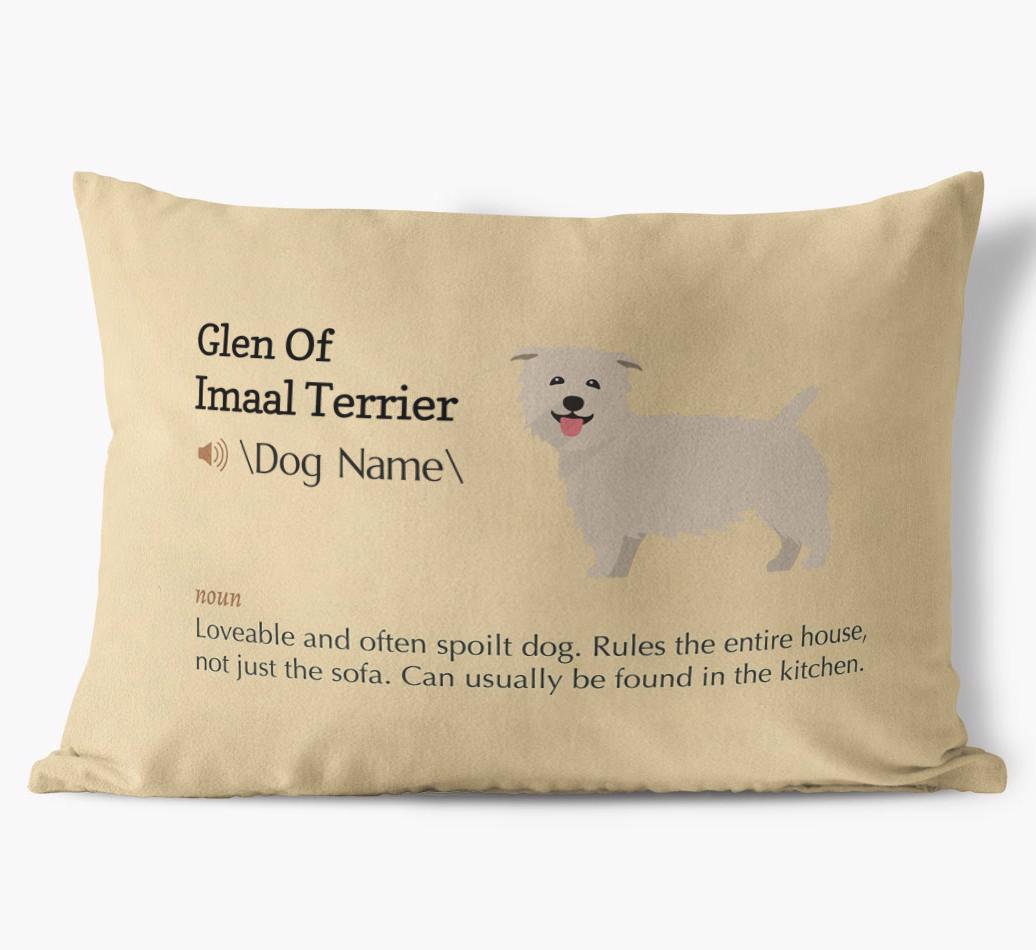 Personalized just for Your Glen Of Imaal and featuring a unique Glen Of Imaal Terrier definition and silhouette, this pillow truly is like no other.