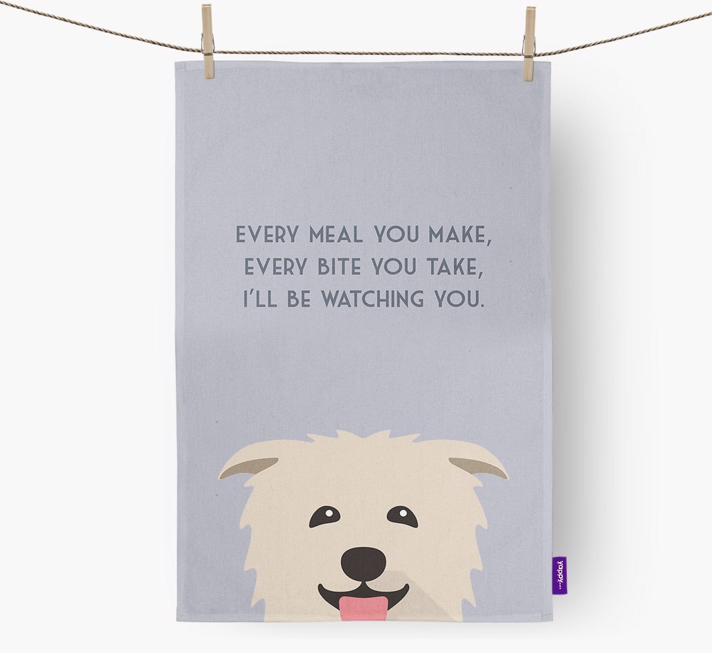 After a long hard day at the pawfice, there’s nothing that Your Glen Of Imaal loves more than to watch you cook and eat in the hope of a cheeky treat. So, why not let everyone know how sneaky Your Glen Of Imaal really is with this tail wagging dish towel.