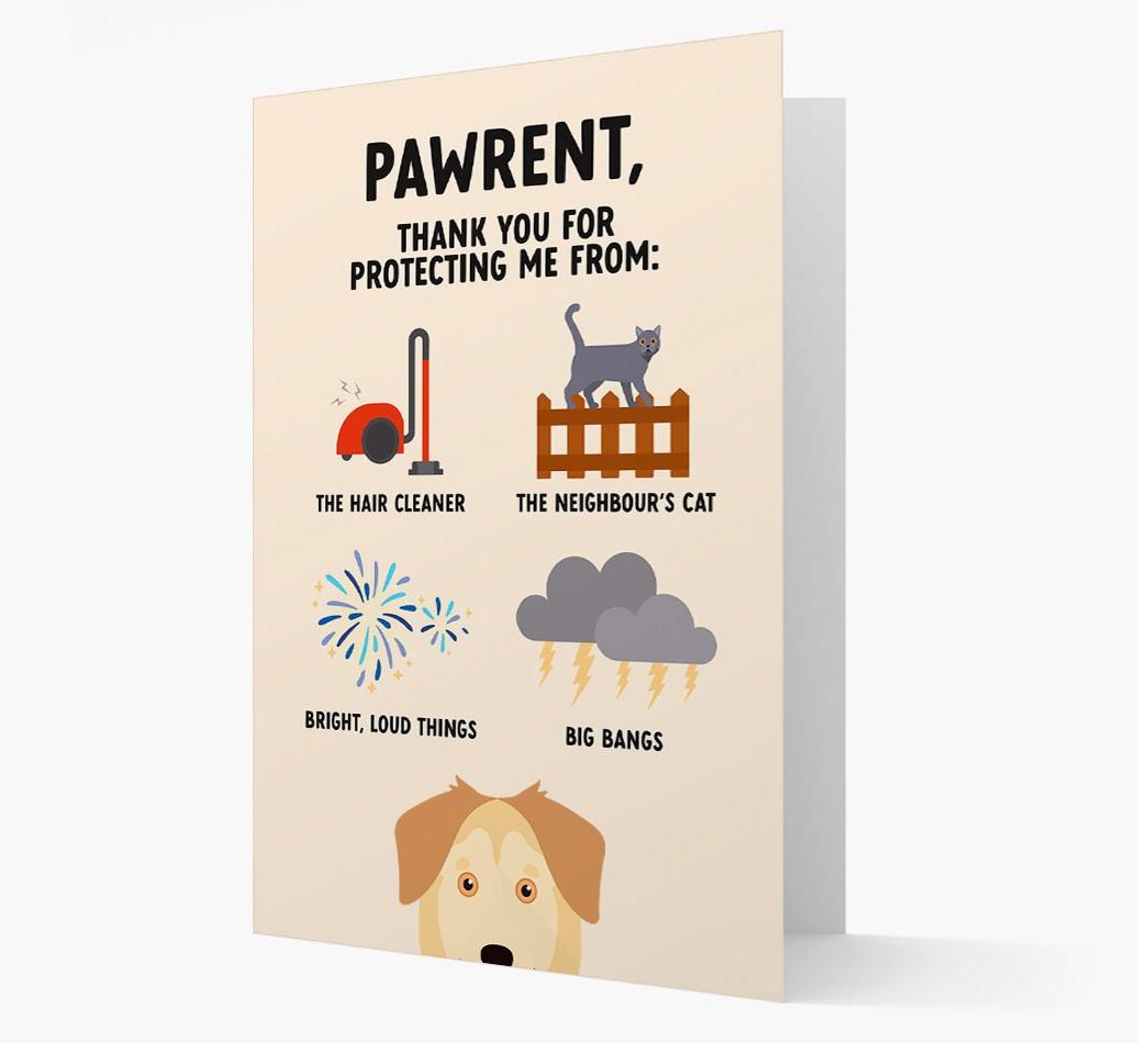 This 5 x 7" card is available in a choice of four pastel colors and is blank inside to pen (or paw) your own message.