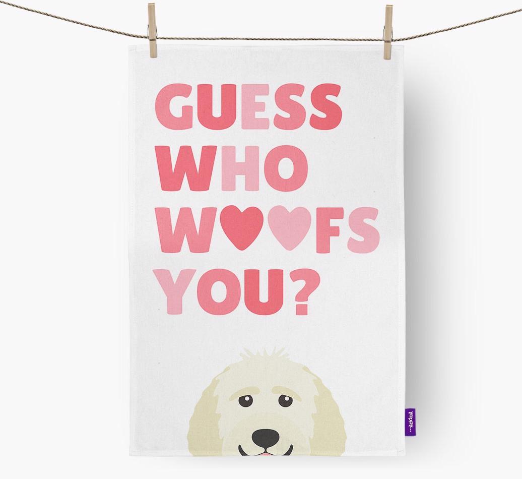 'Guess Who Woofs You?' - Personalized Goldendoodle Dish Towel