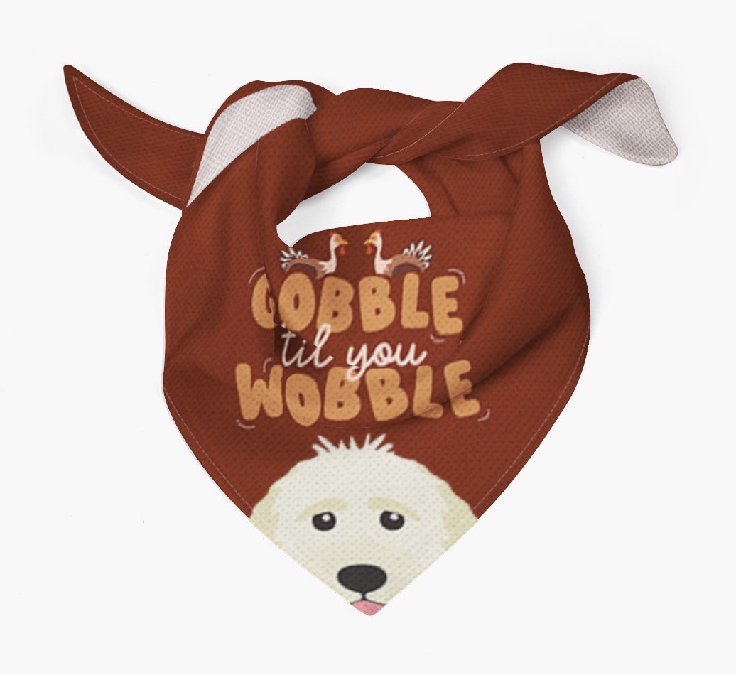 This cute custom bandana is printed with the phrase of the season, "gobble til you wobble"!