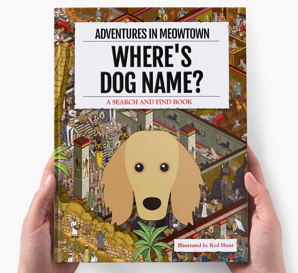 Get ready to unleash your inner detective with our popular Search & Find book, ‘Where’s (insert dog name)?’ It’s the personalized dog book everyone’s yapping about! With twelve beautifully illustrated locations to explore, we challenge you to find your adventurous {breedShortName} on each action-packed page. Can you spot all the canine cameos and funny parodies too?
