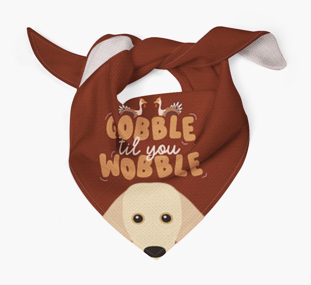 This cute custom bandana is printed with the phrase of the season, "gobble til you wobble"!