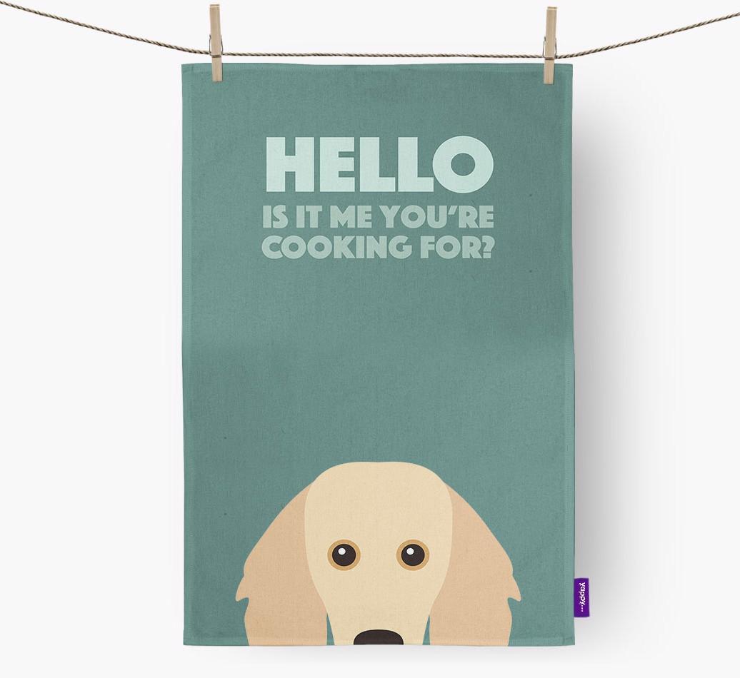 This gorgeous dish towel is sure to delight every Golden Dox pawrent, especially as it stars their pup asking their favorite question, 'is it me you're cooking for?'