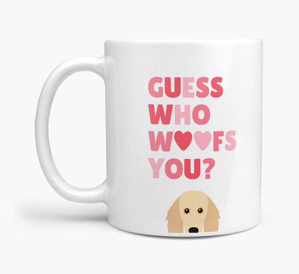 Personalized with Golden Dox's cute face, this adorable mug is perfect for showing off the one who "woofs" you - how sweet!