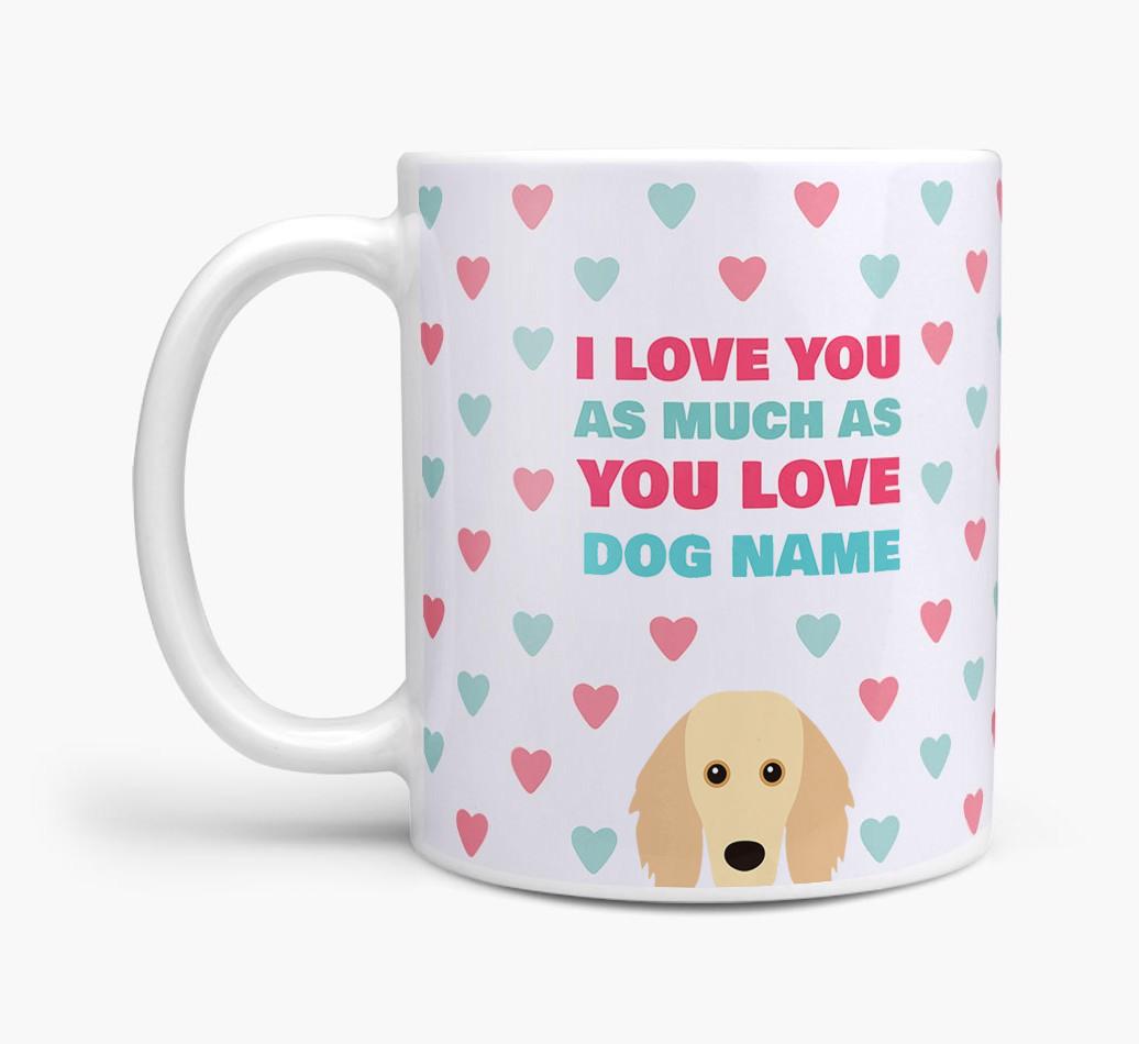 Featuring a pattern of hearts and personalized with Golden Dox's name and their adorable icon, this mug is sure to make the receiver feel plenty of love and warmth towards you – and that’s not just from their coffee!