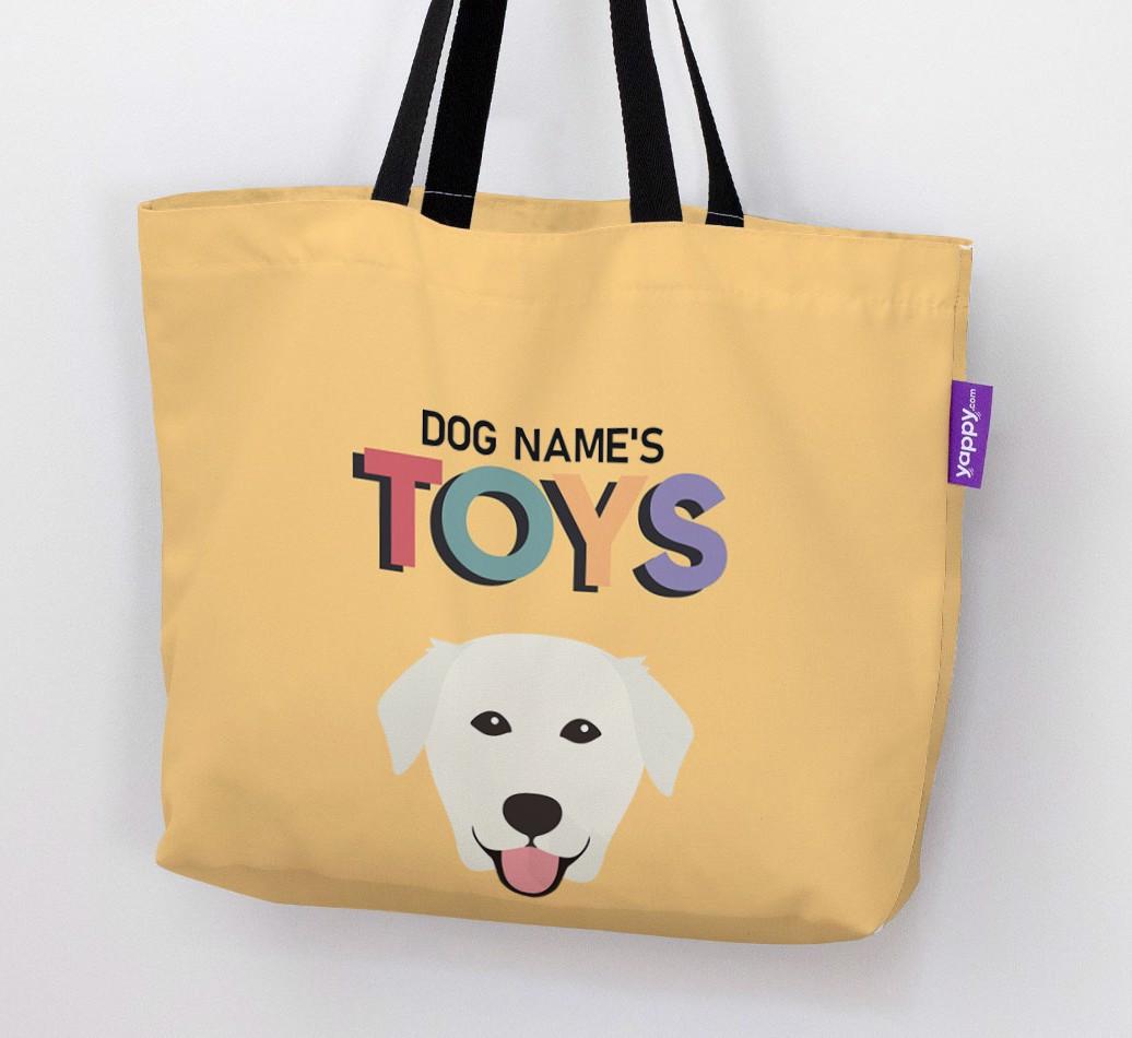 Don’t worry, we’ve got you covered with this pawsonalized canvas bag made for your Golden Labrador’s toy collection!