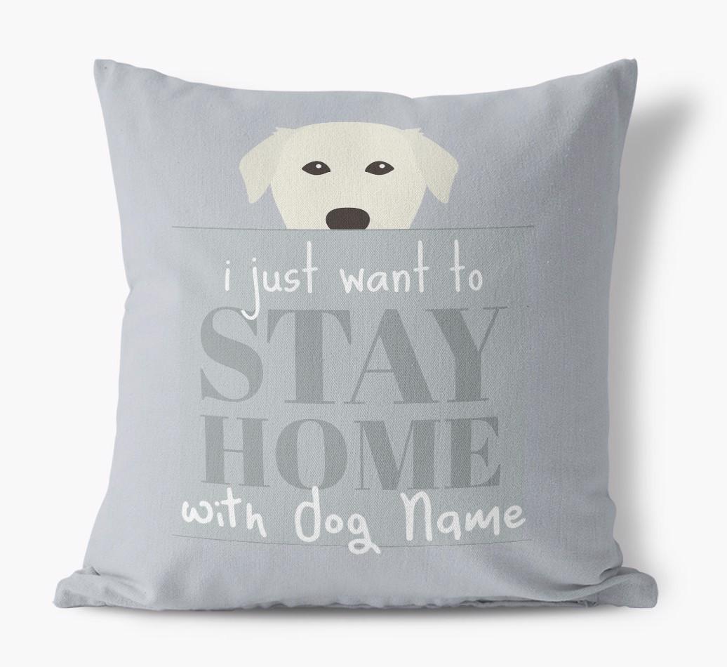 Stay Home: Personalized Golden Labrador Canvas Pillow