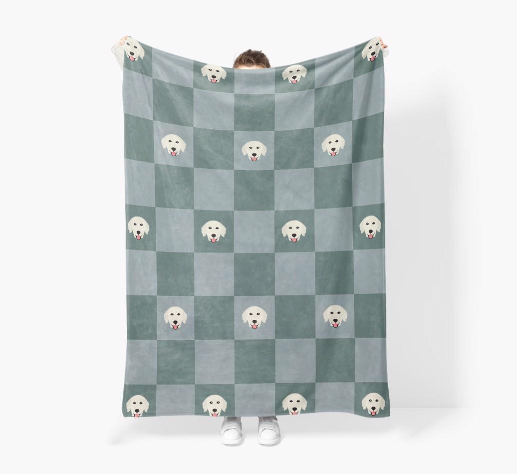 'Checkboard' - Personalized Golden Retriever Blanket: Premium Sherpa Fleece