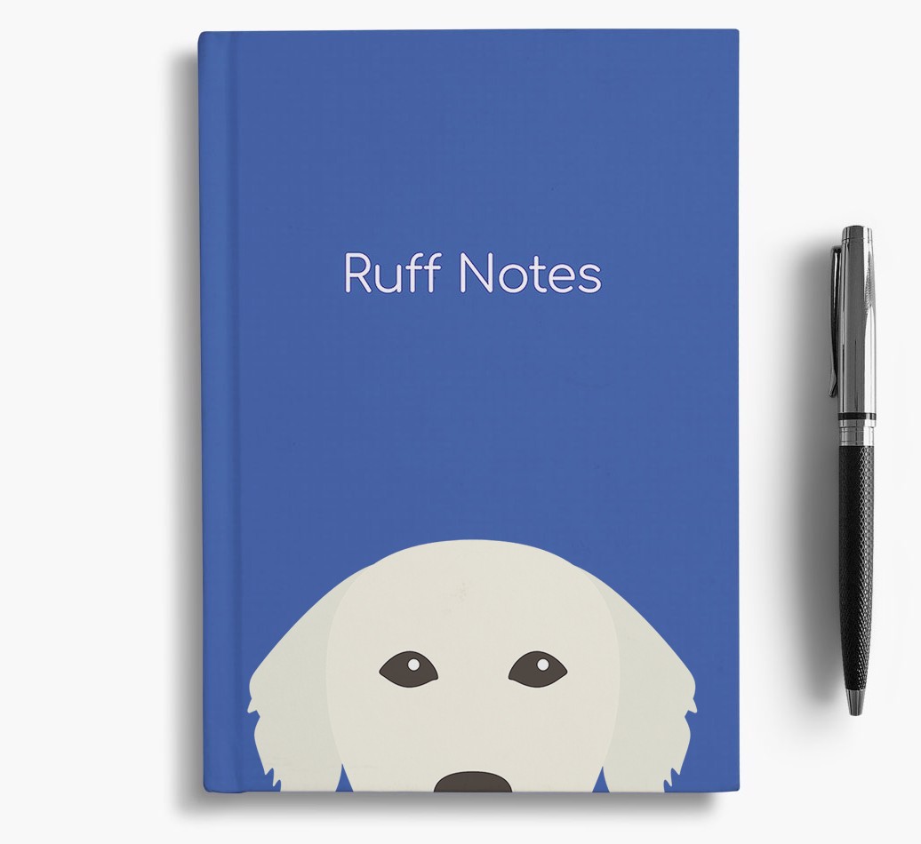 The front cover features our exclusive Golden Retriever peeking icon and is printed with the words, ‘Ruff Notes’, whilst the back is printed with the words ‘Live. Laugh. Woof.’.