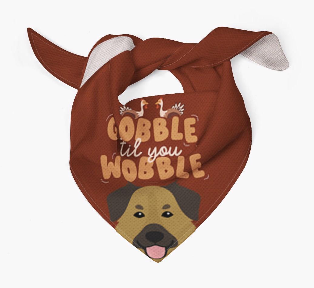This cute custom bandana is printed with the phrase of the season, "gobble til you wobble"!