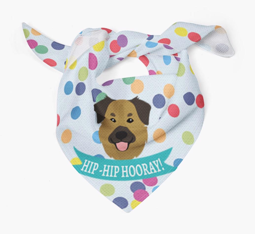 Featuring our famous Golden Shepherd icon and the words ‘hip-hip hooray!’ printed upon a colorful confetti background, Your Golden Shepherd is sure to look pawty ready wearing this bandana.