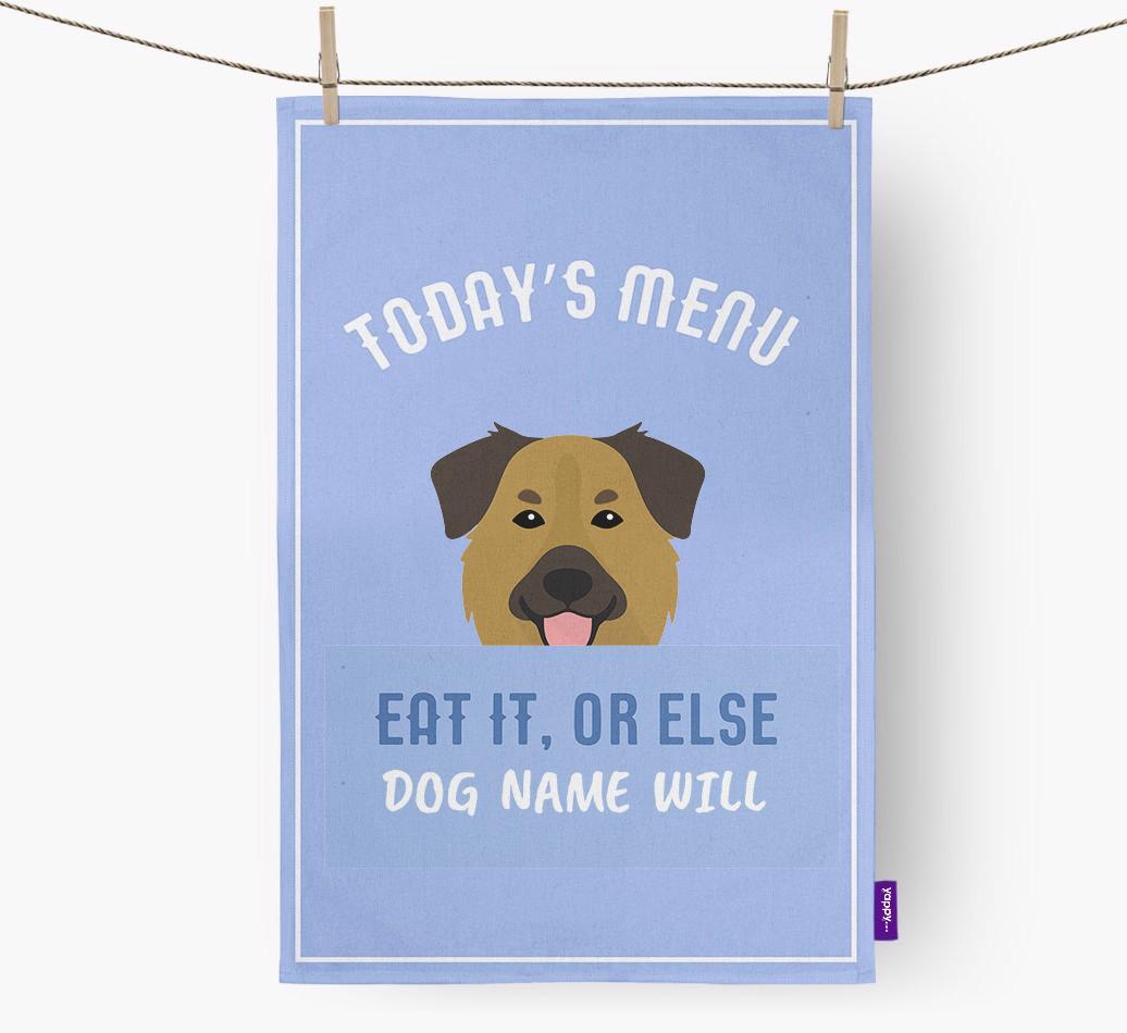 'Eat It, Or Else...' - Personalized Golden Shepherd Dish Towel