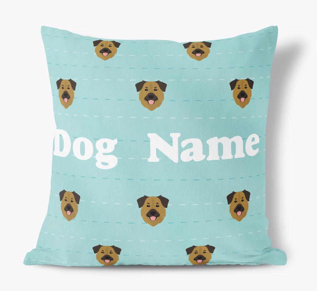 Featuring a furbulous Golden Shepherd icon pattern, this pillow is available in six chic color-ways and is personalized with Your Golden Shepherd's name.