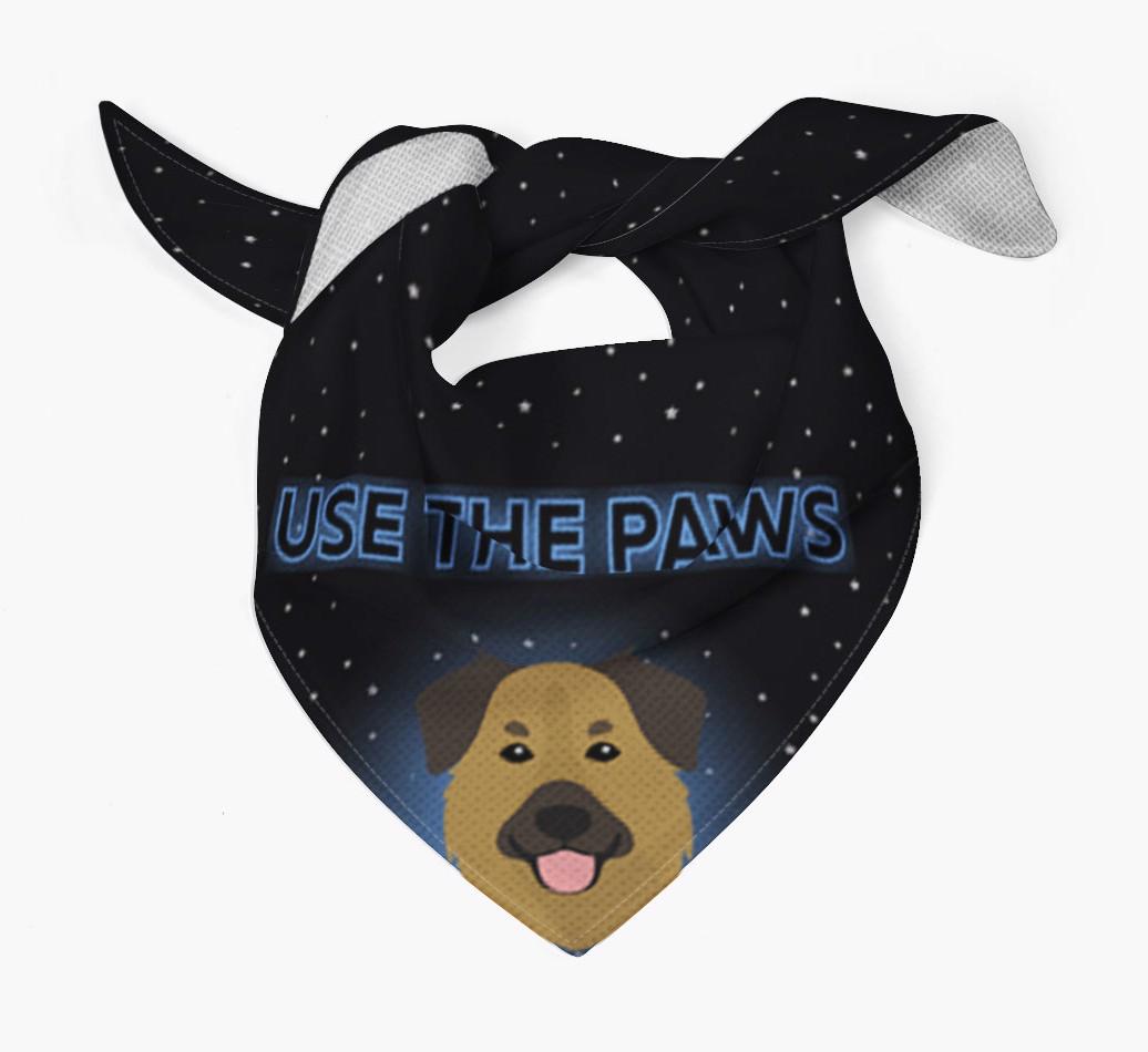 Featuring a starry night sky and glowing text, this bandana is made extra special with the addition of your Golden Shepherd's cute icon.