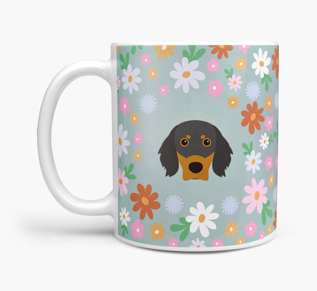 Featuring a colorful bunch of flowers, this mug is printed with the words 'woofly grandma' on one side of the mug and your Gordon Setter's cute icon on the other. Bloomin' lovely!