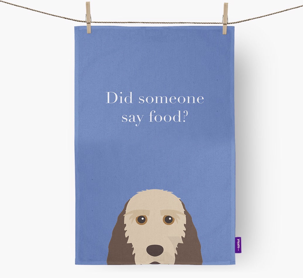 Printed with the question, ‘Did someone say food?’, this dish towel knows exactly what’s on Your Basset Griffon’s mind.