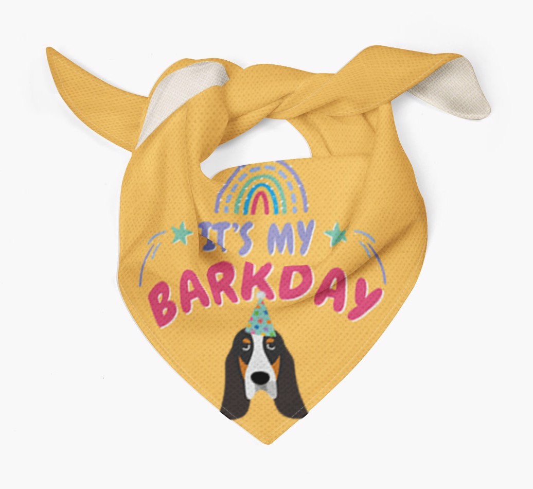 As long as Grand Bleu De Gascogne is wearing this bandana, they don't need a formal announcement that it's their bark-day!