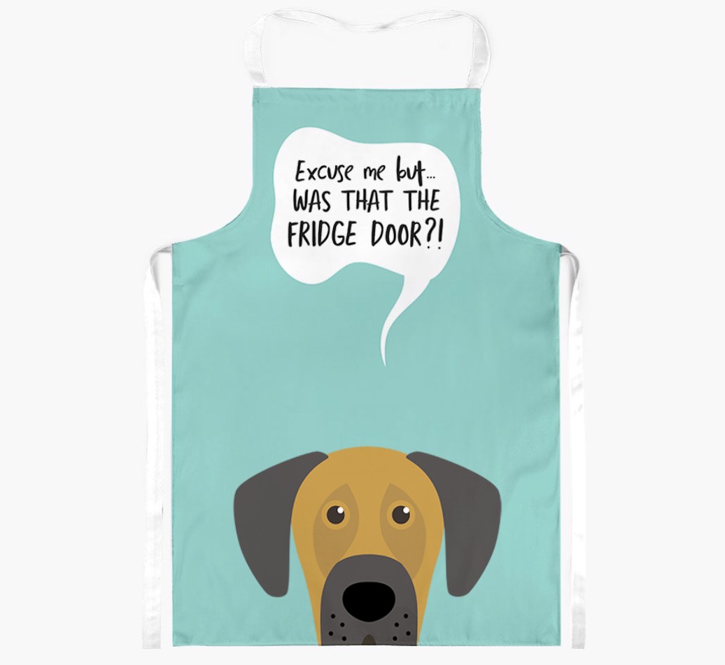 Featuring your hungry hound's cheeky icon and available in five eye-catching colors, this apron is a must-have for parents of greedy pups!