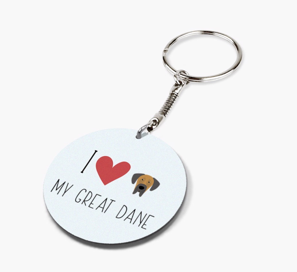 'I Heart My Great Dane' - Personalized Double-sided keychain with Great Dane Icon