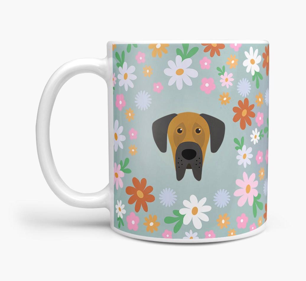 Featuring a colorful bunch of flowers, this mug is printed with the words 'woofly grandma' on one side of the mug and your Great Dane's cute icon on the other. Bloomin' lovely!