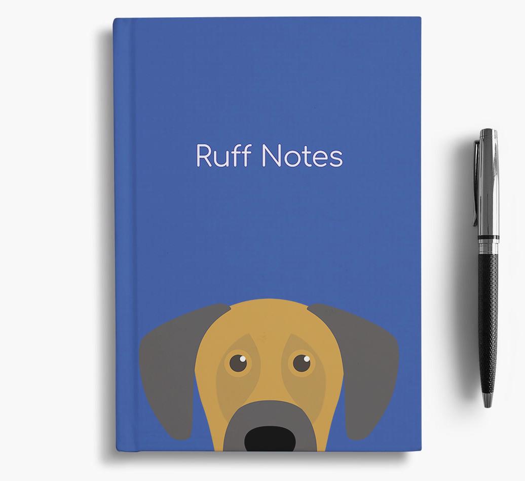 The front cover features our exclusive Great Dane peeking icon and is printed with the words, ‘Ruff Notes’, whilst the back is printed with the words ‘Live. Laugh. Woof.’.