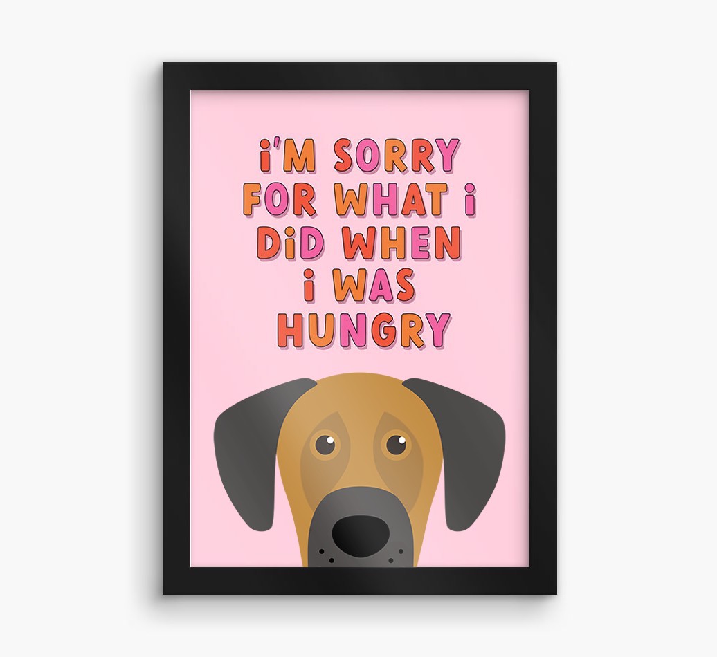 Does Great Dane turn into a hangry hound when they're hungry? Can you relate? With this print in the home, at least you'll always be reminded of how sorry your Great Dane is for their actions when they were hungry. Just look at this print and your Great Dane's cute face and all will be fur-given... Hopefully.