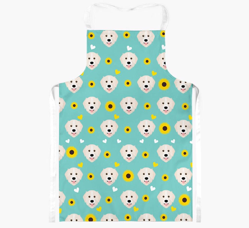 This apron has a delightful sunflower and heart pattern, and best of all - it's personalized with Great Pyrenees's face too! This cute and colorful apron is sure to put a smile on every dog lover's face.